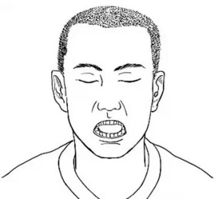 Method: Use the index fingers of both hands to start from the middle of the eyebrows, push down along the bridge of the nose and then rub it up, do not be too strong, can be operated more than 36 times, and the nose is slightly red.