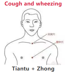 Tiantu point: the midline in front of the neck, the depression in the center of the sternum. Zhi Zhong point: The chest is in the middle between the two breasts.