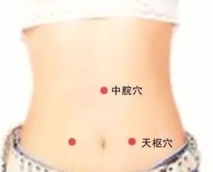 Zhongzhong point: upper abdomen, on the front midline, 4 fingers wide above the navel. Tianshu point: 2 fingers wide in the middle of the navel.
