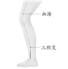 Blood Sea Acupoint: Bend your knees, cover your kneecaps with your palms, point your fingers upwards, open your palms naturally, and end your thumb to the place with the most meat; Sanyinjiao: Located on the inside of the calf, 4 fingers above the ankle joint.