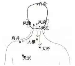 Fengchi point: On both sides of the large tendon behind the head and forehead parallel to the earlobe, the two pits behind the head and head are this acupoint; Jianjing point: at the midpoint of the line between the large vertebra and the acromion, the highest point of the shoulder.